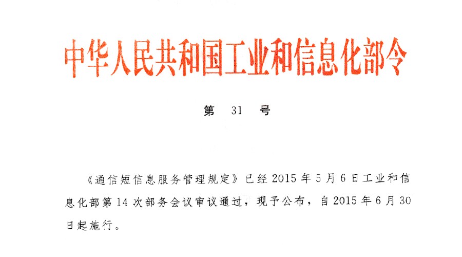 为了规范通信短信息服务行为,维护用户的合法权益,促进短信息服务市场的健康发展,根据《全国人民代表大会常务委员会关于加强网络信息保护的决定》、《中华人民共和国电信条例》等法律、行政法规,工业和信息化部于2015年5月6日审议通过了《通信短信息服务管理规定》。在中华人民共和国境内提供、使用短信息服务的都适用本规定。